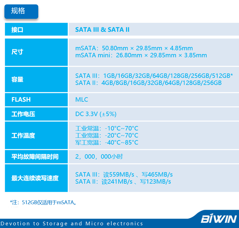 接口类型:mSATA